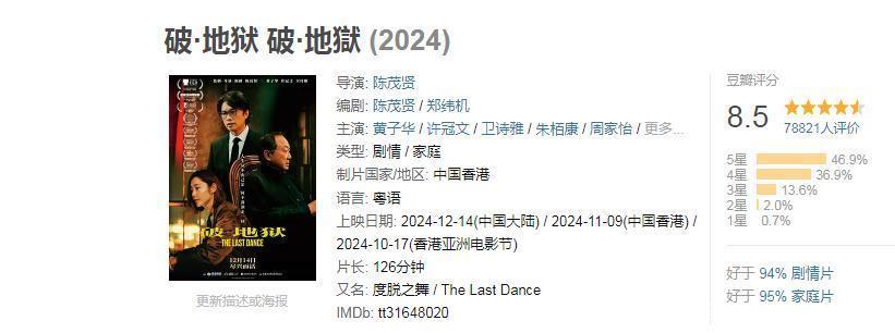 《破·地狱》的成绩,也对得起这部作品的高度:在香港上映后,仅香港的票房,就达到了近亿的高度,成为了“港影史上第一”。